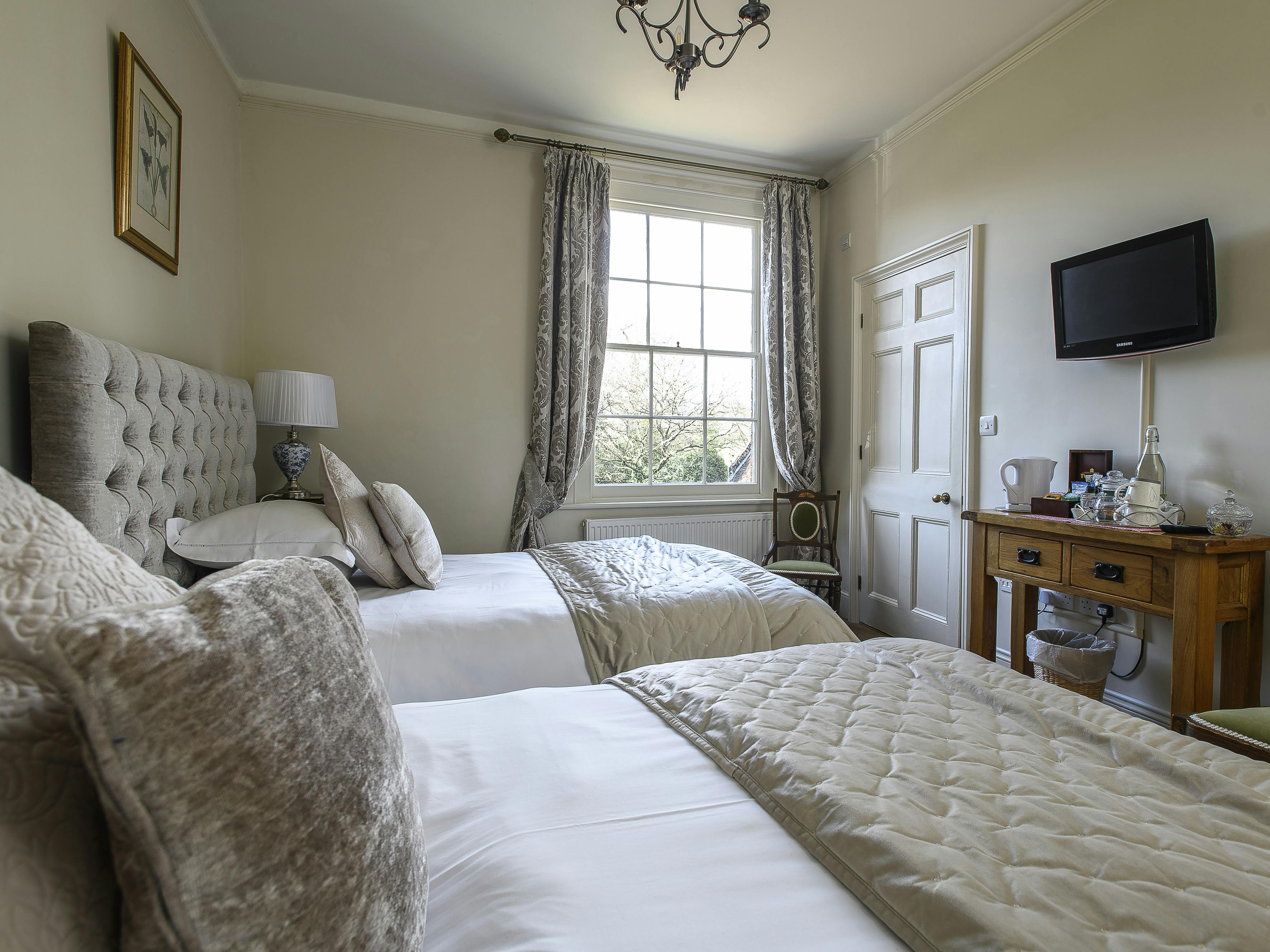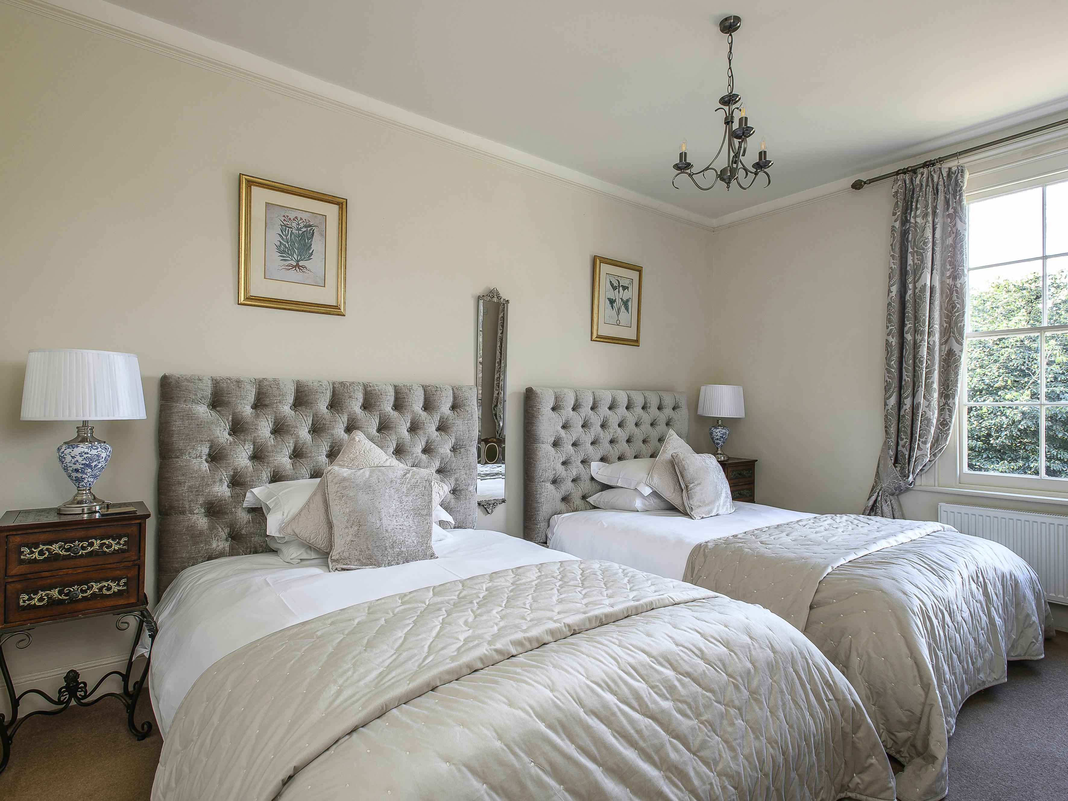 Chittenden has luxury twin double beds with stylish damask curtains. This room enjoys the afternoon sun with views across the drive to the large old specimen oak trees and many beautiful sunsets.