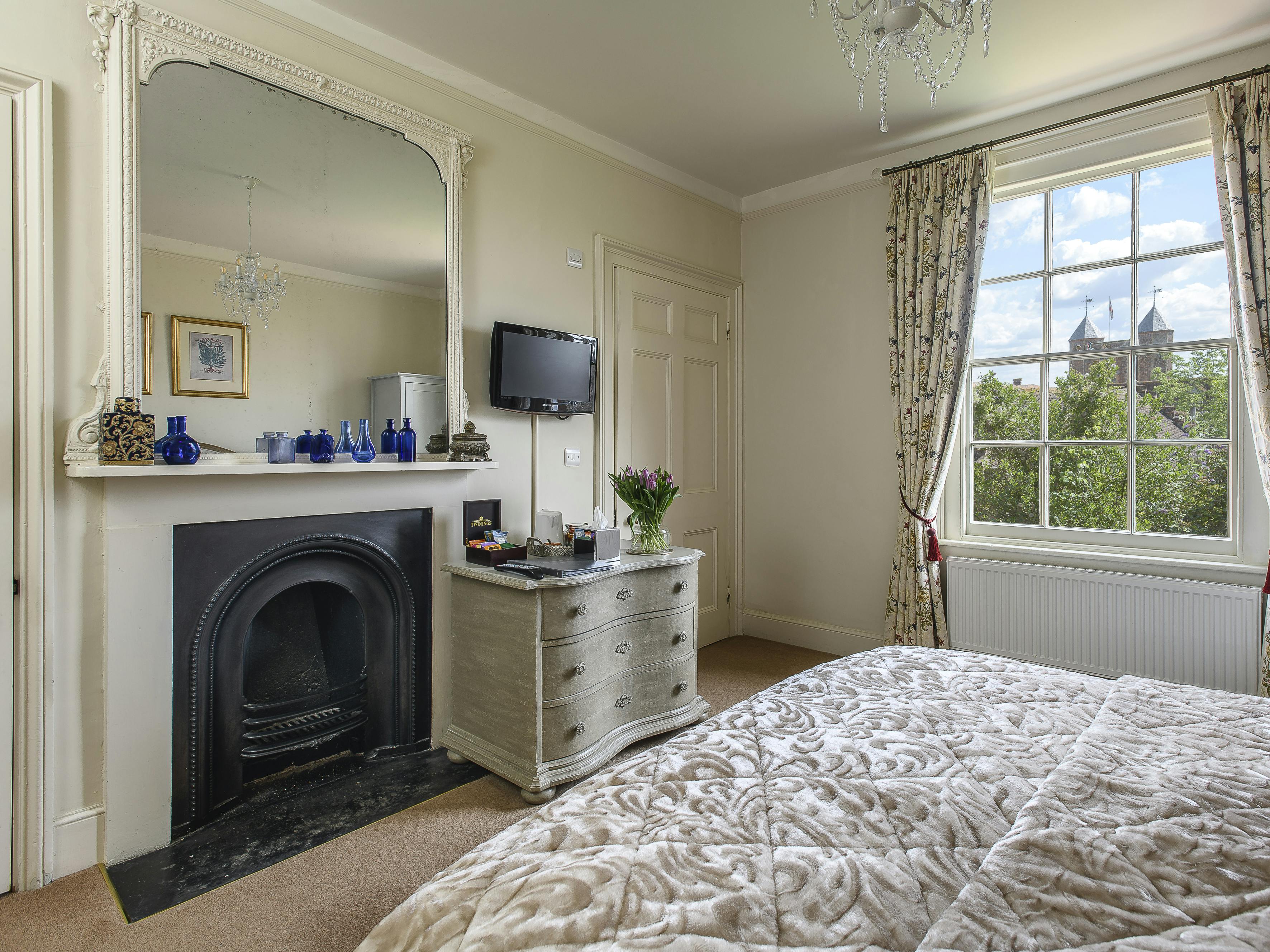 Hazelden is a charming bedroom full of Victorian character with an original fireplace and mirror. It has a super-king sized bed. The view from Hazelden towards the Elizabethan Tower is very close and the vista of the sunrise from behind the Tower is stunning.
