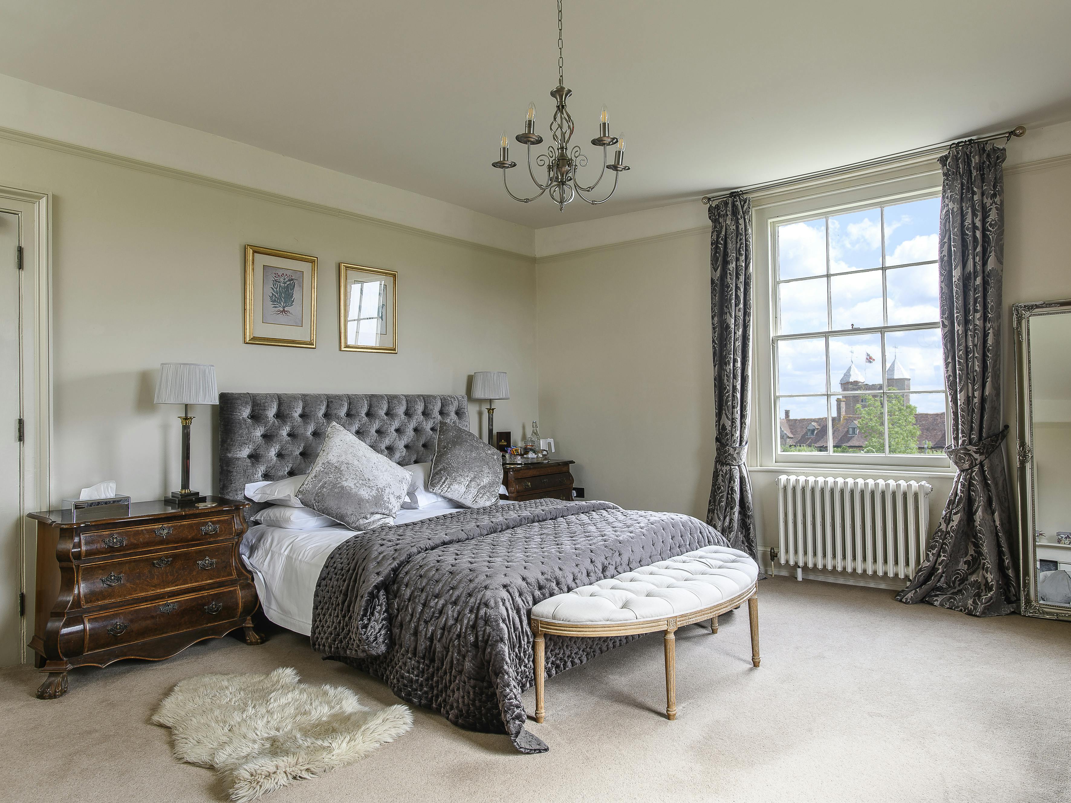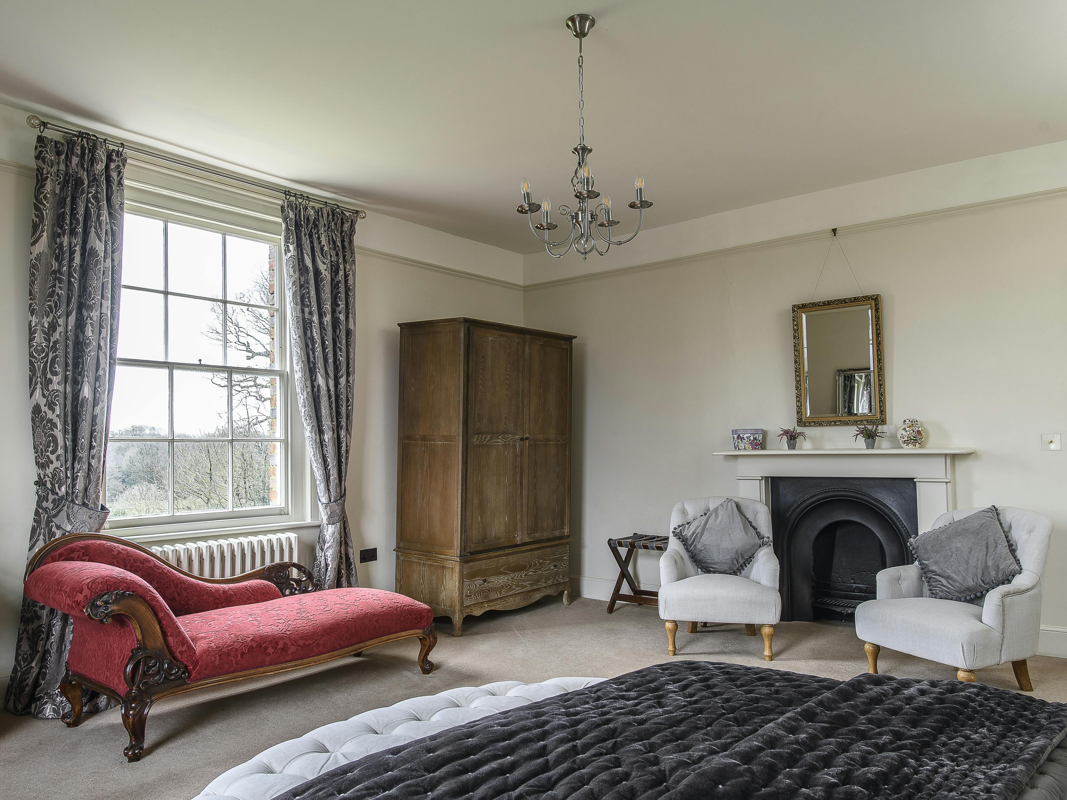 Sissinghurst is our largest bedroom with a super-king size bed and an original fireplace. This double aspect bedroom has views eastwards towards the iconic Sissinghurst Elizabethan tower and south across Dog Field towards the ancient woodland through which Elizabeth 1 and her court made their way to Sissinghurst in 1573.